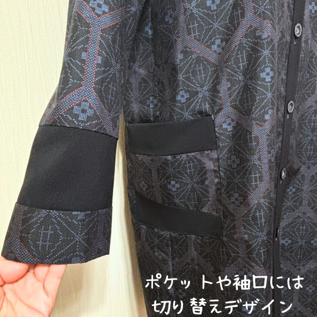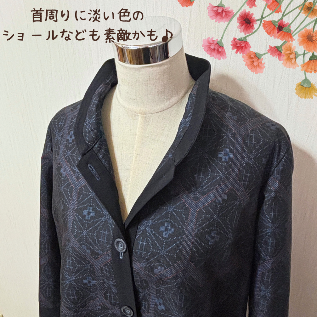 全体的に黒の分量が多いので、ちょっと軽やかに着ていただけるよう、