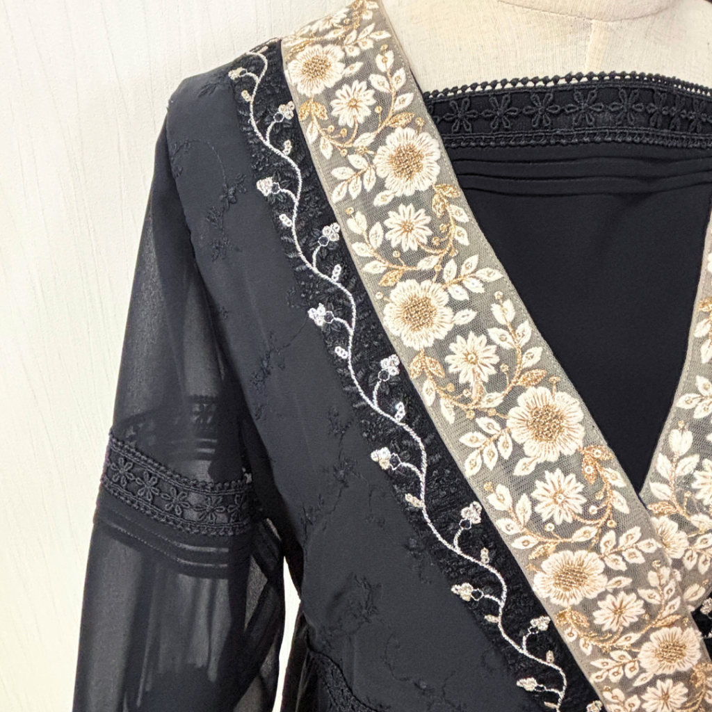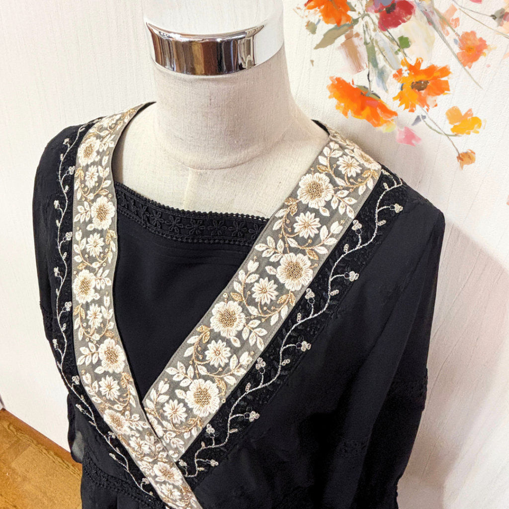 苦肉の策で、袖などは無地のオーガンジーを使用したのですが、なんと逆にこれが大当たり!(°▽°)
