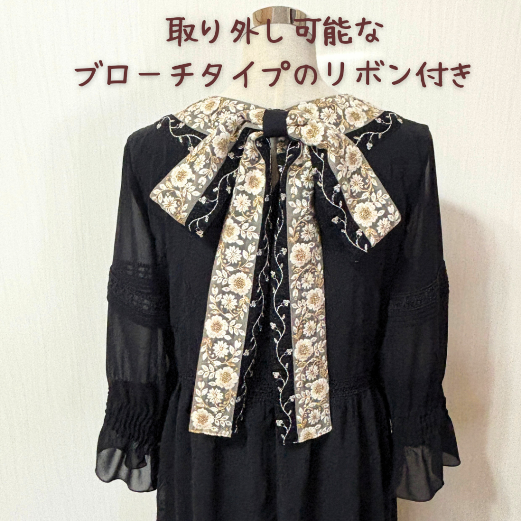 また、別にご用意したリボンはブローチ式になっているので、首元や腰•ヘアアクセサリーとしても使用可能。