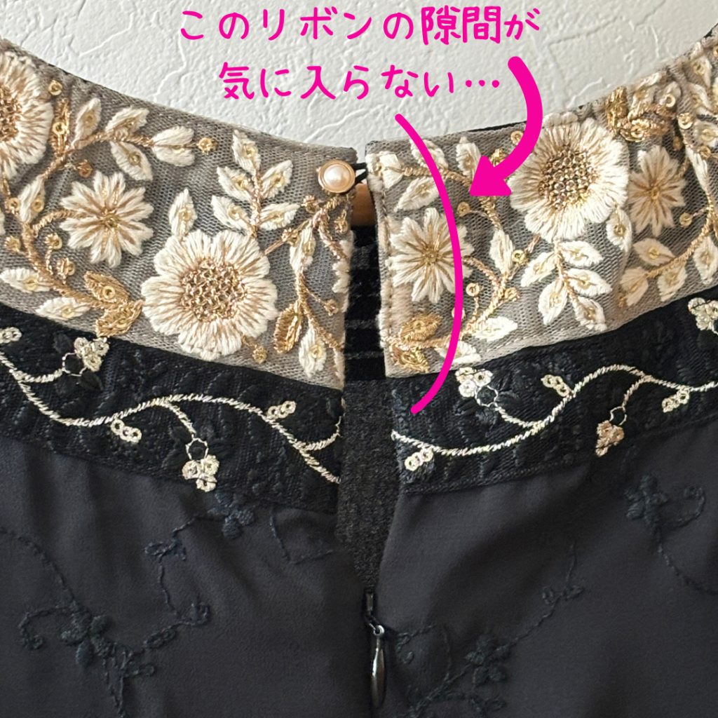 お客様のセンスで選んでいただいたリボンのお陰で、本当に素敵なドレスに仕上げることが出来ました(´∀`*)