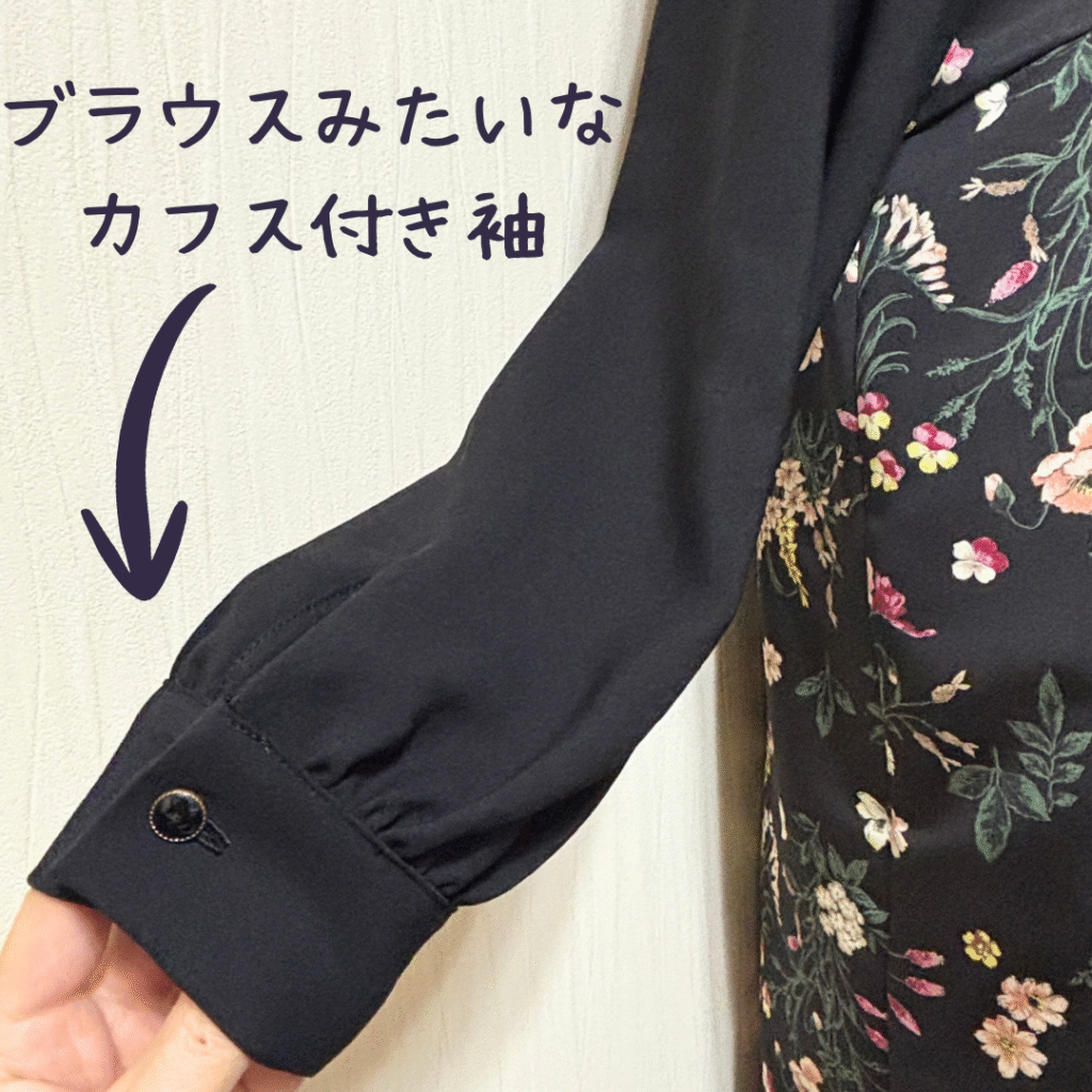 袖口カフスも付けたので、一見ブラウスとの重ね着の様にも見えます。
