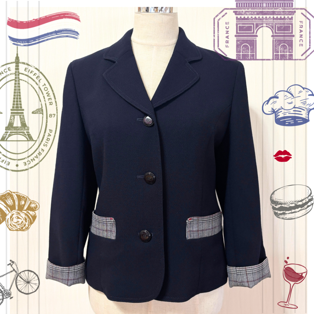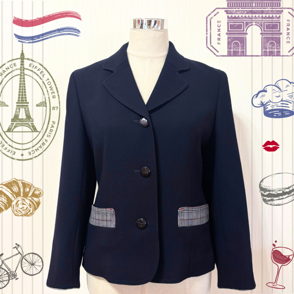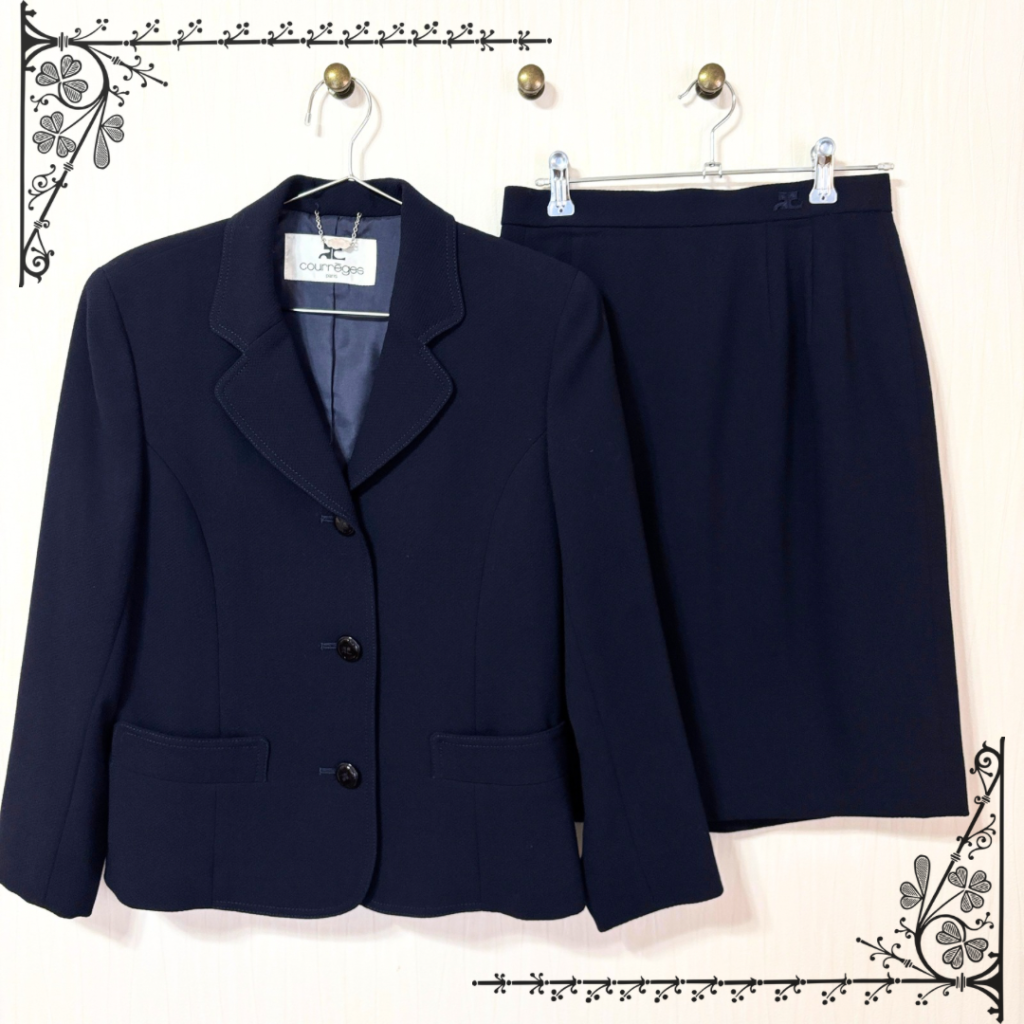 Courrèges(クレージュ)様の上品なネイビーのジャケットとタイトスカートのセットアップでございます(о´∀`о)